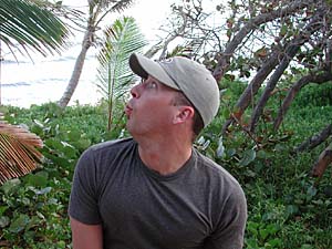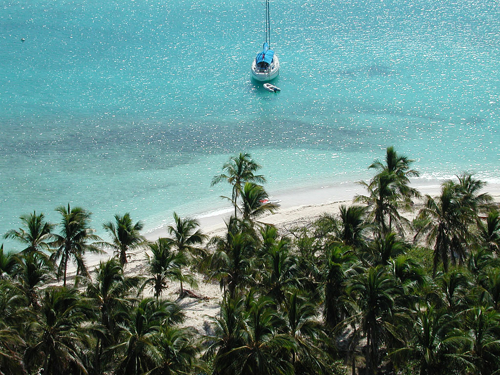 Since our sailboat captain had described a location atop one of the small islands where we could look down on the reefs, and might even be able to spot a small shark, our first activity for the day was pretty much a no-brainer. Rick even woke up with a shark fin in his hair in anticipation!