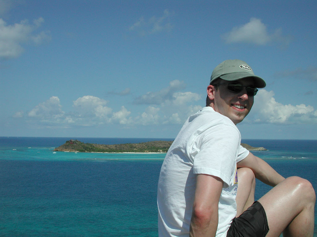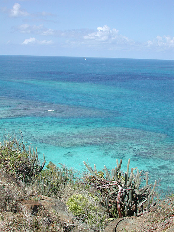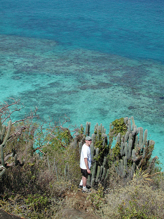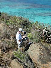 A few minutes of hiking brought us to some very large boulders at the top of the island. The view was breathtaking. Blue green sea with coral reefs everywhere. We stayed for over an hour looking around at every angle.